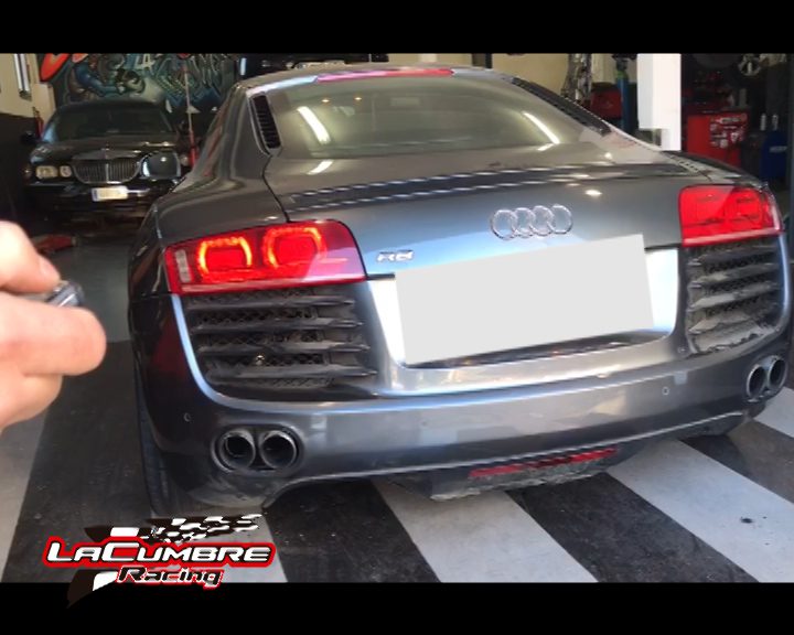 Montaje del escape deportivo con válvula regulado con mando a distancia de apertura y cierre para este Audi R8.